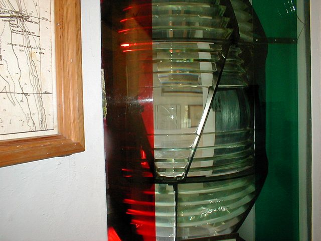Fresnelsche Linsenapparat, die Farben Rot und Grün kennzeichnen die Leitsektoren.