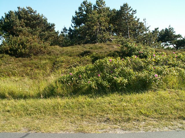Hinter diesen Kiefern und Dünen befindet sich der Inselfriedhof.