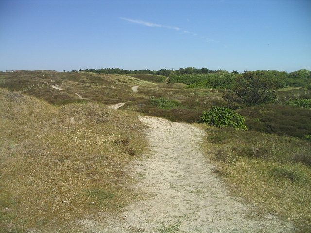 Quer durch die Heidedünen verläuft hier ein kleiner Pfad.