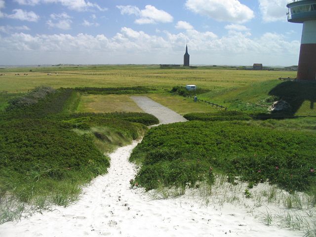 Nun befinden wir uns oben auf der Sanddüne. Der spitze Turm geradeaus ist
