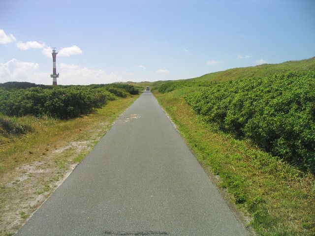 Ganz hinten, kurz vor der Kurve, entschwindet Henseleits Insel-Elektrotaxi.
