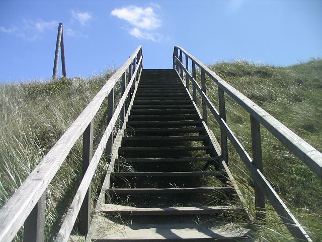 So steil sind die Dünen hier, daß man eine Treppe braucht, um hinüberzukommen.