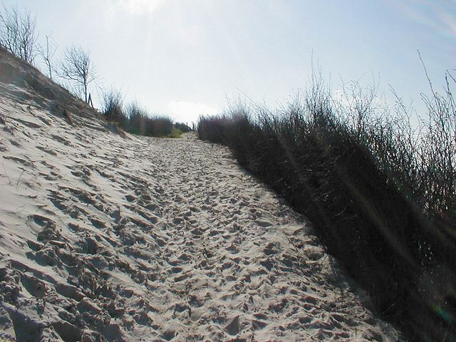Hier geht es hinauf auf die Düne, Sie gelangen dann zur »Straße zum Osten«.