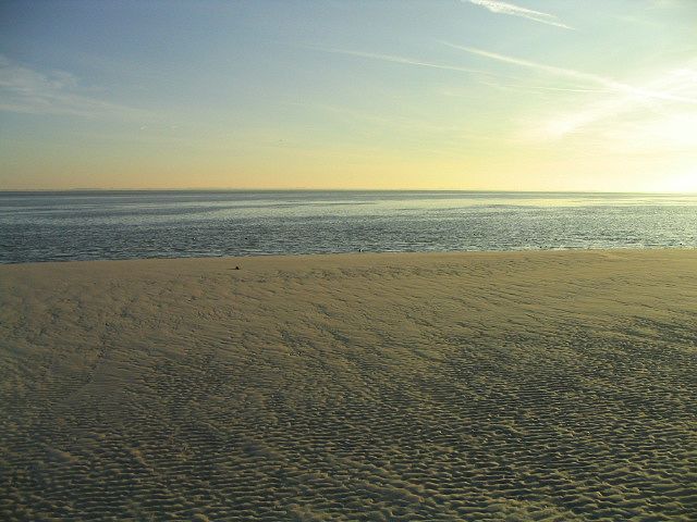 Der gerade noch von der Sonne bestrahlte Südoststrand von Wangerooge.