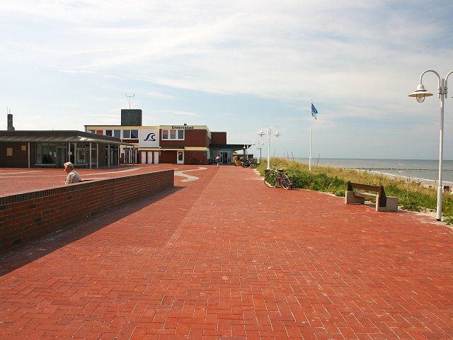 Bei dem Gebäude dort hinten handelt es sich um das Wangerooger Kurmittelhaus.