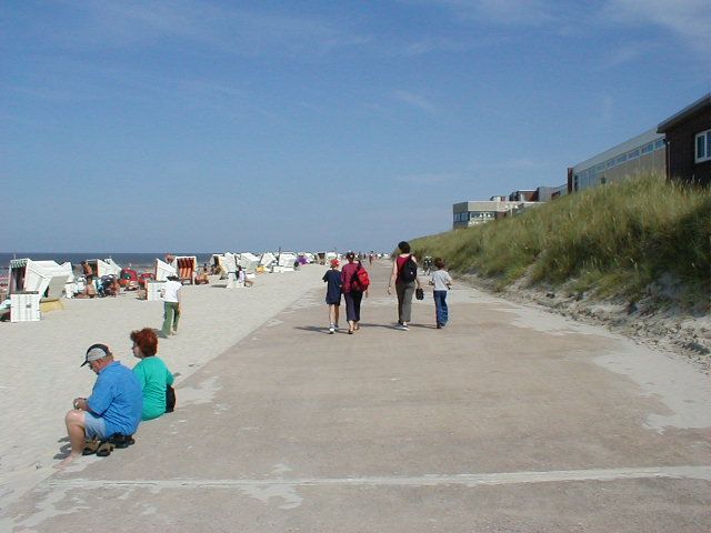 Wir befinden uns nun auf der Strandmauer im Bereich des Strandkorbschuppens.