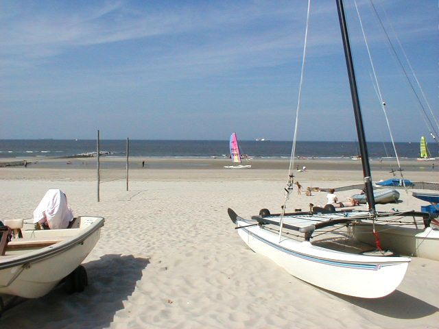 Zahlreiche Katamarane sind hier am Surfstrand »geparkt«.