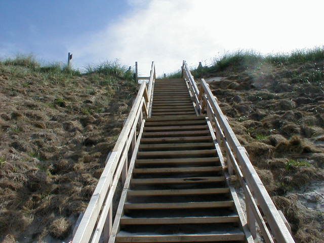 Diese Düne ist sehr steil, deshalb steht an dieser Überwegung eine Treppe.