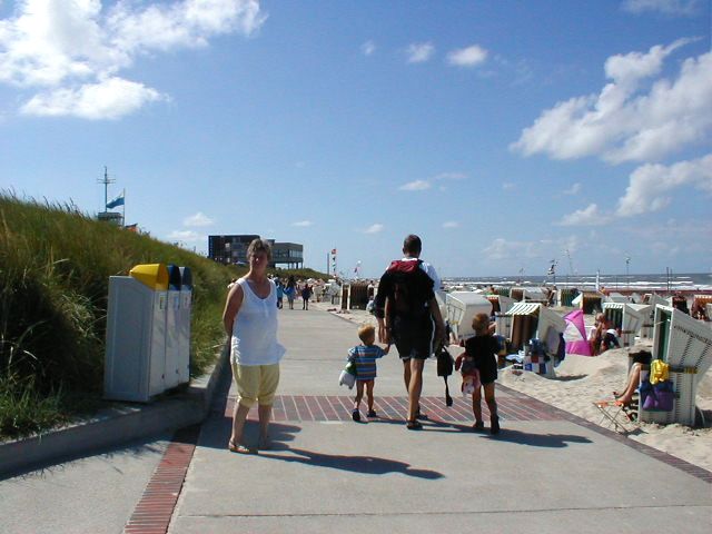 Wie Sie hier sehen, befindet sich links ein Aufgang zur oberen Strandpromenade.