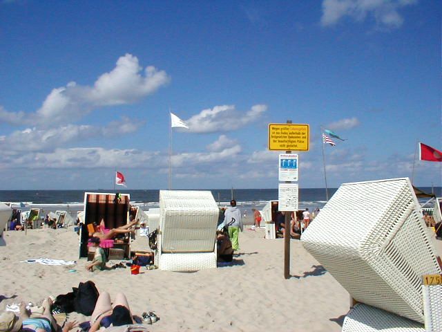 An den Strandkorbnummern auf gelbem Hintergrund erkennt man, daß es sich