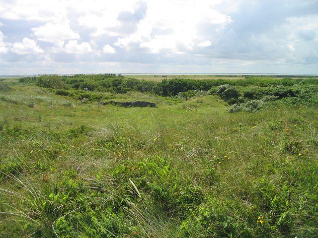 Geradeaus sieht man wieder einmal einige Bunkerreste aus der Zeit des Krieges.