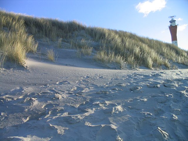 Der Neue Leuchtturm ist hier hinter den Nordwestdünen zu sehen.