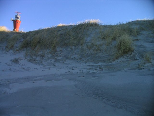 Dort oben im Neuen Leuchtturm befindet sich das rot blitzende Leuchtfeuer,