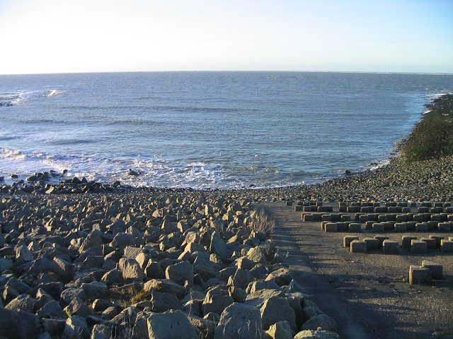 Zwei unterschiedliche Arten von Wellenbrechern: Zum einen die Natursteine (links),