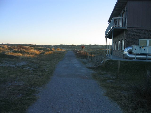 nun geradewegs zur Straße, die vom Westdorf zum Westanleger führt.