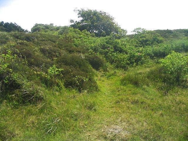 Hier zweigt ein Weg ab, der quer durch das Dünengelände führt.