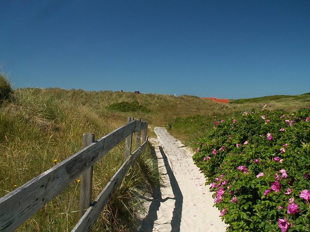 Dieser idyllische, kleine Weg verläuft durch die Inseldünen in Richtung Westen.