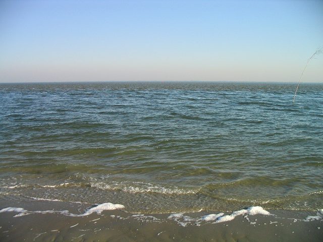 die in flachem Wasser die Fahrrinne markiert.