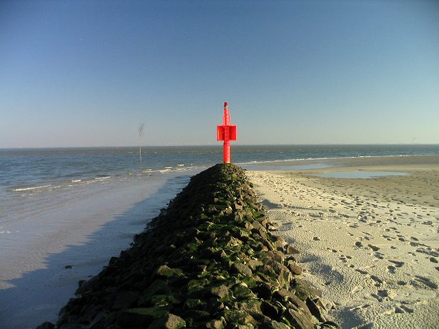Auf dem roten Seezeichen befindet sich ein Blinklicht, das nachts in Betrieb ist.