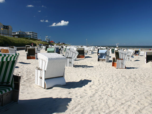 Die Gäste haben Glück, daß jetzt im September wieder zahlreiche Strandkörbe frei sind.