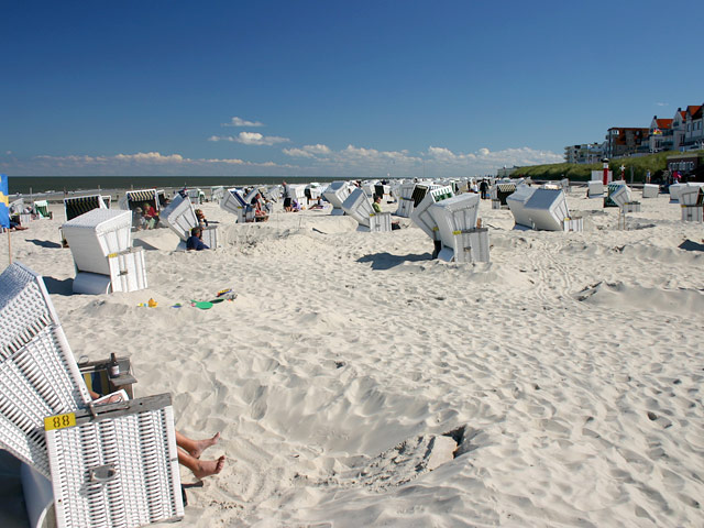 Dort läßt es sich jemand mit Bier und Zeitung im Strandkorb gut gehen.