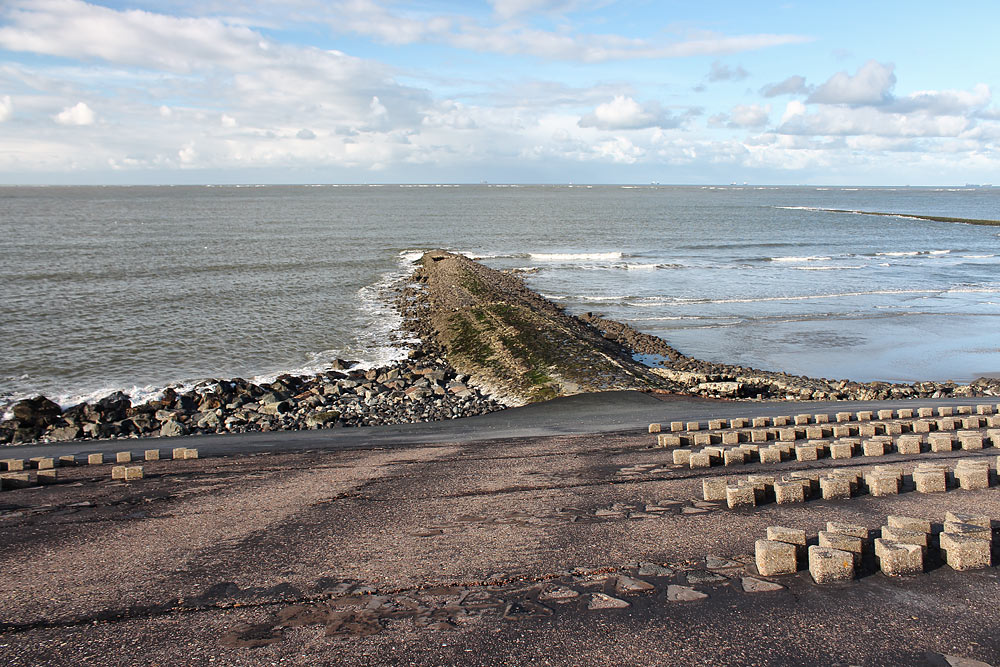 Bei der Buhne F handelt es sich um eine recht kurze Seebuhne, die vom Westdeckwerk aus nach Norden ins Meer ragt.