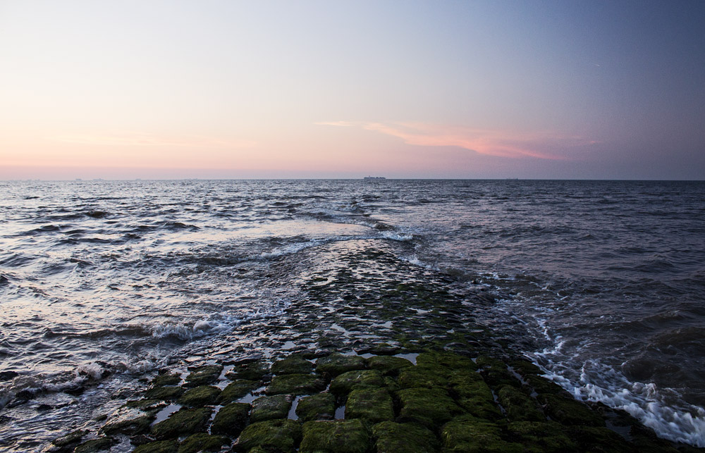 Gerade haben wir noch nach Westen geschaut und dem Sonnenuntergang entgegen geblickt. Nach Norden und vor allem Nordosten hin wird der Himmel immer dunkler, zur Sonnenuntergangszeit herrscht eine eigentümliche Lichtstimmung.
