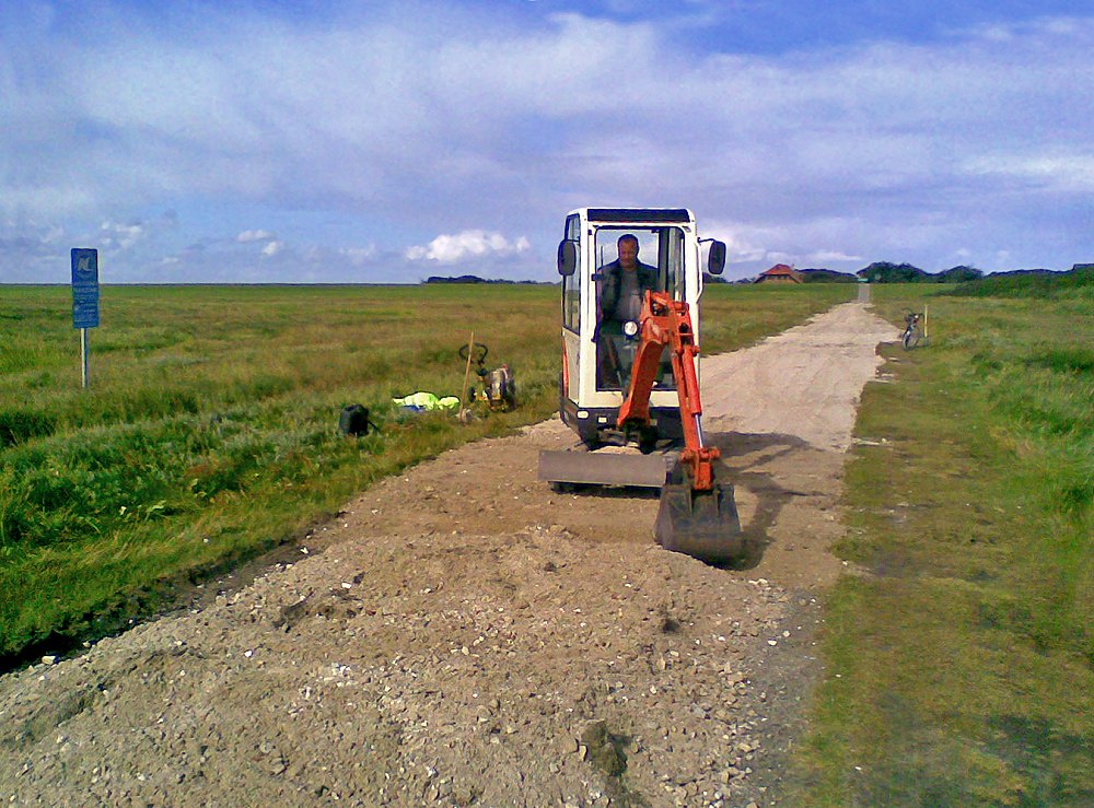 Man glaubt es kaum, aber hier wird tatsächlich das ehemalige (kleingeschredderte) Kurhaus verbaut – es dient von nun an als Unterlage für die Radfahrer und Spaziergänger auf dem Weg zum Ostende.