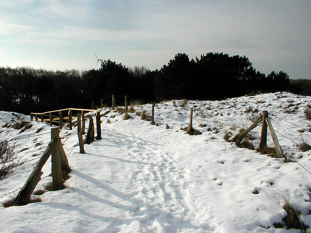 Es geht weiter in Richtung Strand. Hier befinden wir uns auf der Dünenüberwegung »Kläranlage« und blicken in Richtung Süden. Als das kleine Windrad noch stand, konnte man es immer als guten Fixpunkt für den Standort des Klärwerks nehmen.