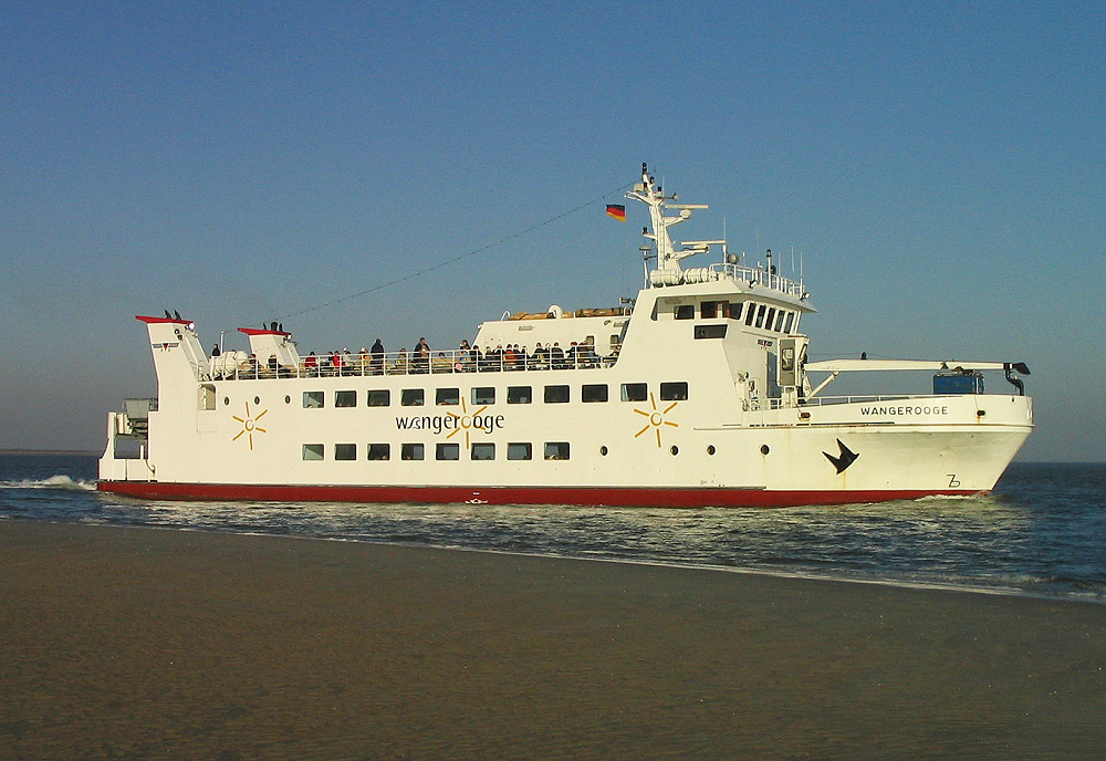 Um ein Haar schrammt die MS ›Wangerooge‹ hier an der Sandbank entlang – so scheint es. Doch die Entfernung bzw. Wassertiefe reichte schon noch aus, keine Sorge.