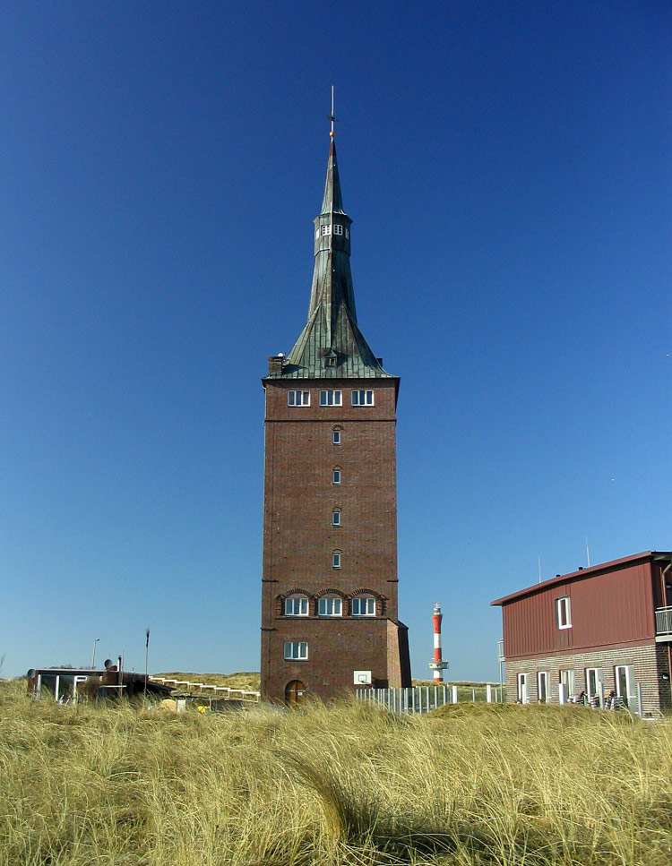 ‹ Die Lücke zwichen dem Westturm und dem danebenliegenden Wirtschaftsgebäude gibt den Blick auf den Neuen Leuchtturm einige hundert Meter weiter nördlich frei.