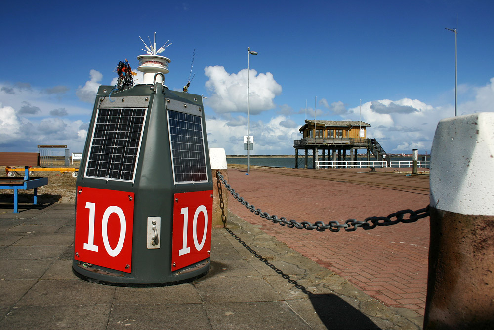 Falls doch einmal etwas repariert oder ausgetauscht werden muß, braucht man nicht mehr die komplette Tonne einholen und zum Tonnenhof mitnehmen, es reicht von nun an, den »SKA« (Solar-Kompaktaufsatz), den wir hier sehen, auszutauschen.