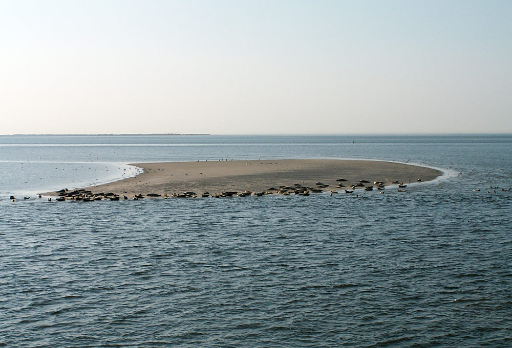 Auf einer großen Sandbank, dem »Eversand«, tummeln sich bei jedem Niedrigwasser ca. 50 bis 70 Seehunde, mal mehr, mal weniger.