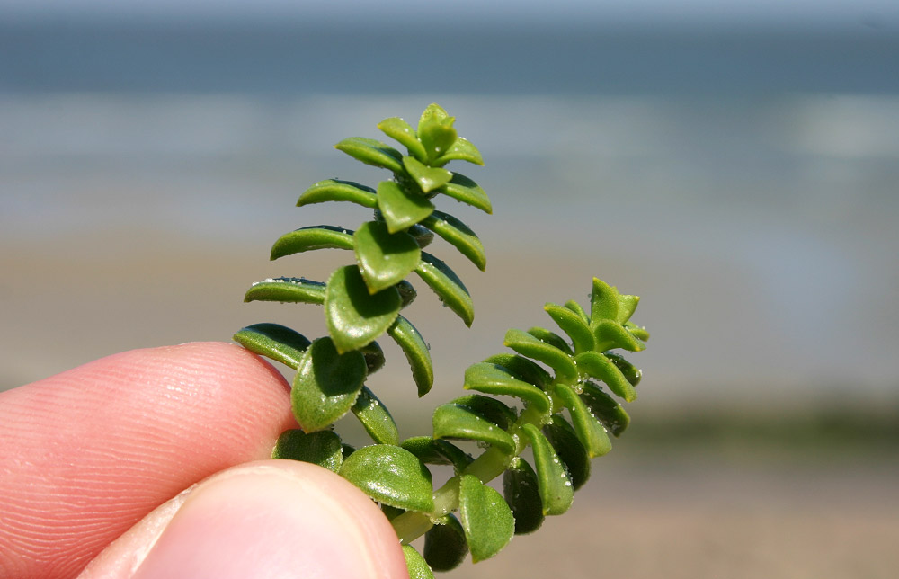 Eine Pionierpflanze, die mit als erste am Strand wächst, ist die »Salzmiere« (Honckenya peploides). Sie ist extrem widerstandsfähig, ihr macht auch die salzige Strandumgebung nichts aus. Daher ist sie ein wichtiger Bestandteil im Küstenschutz, da auch sie den Sand festhält.