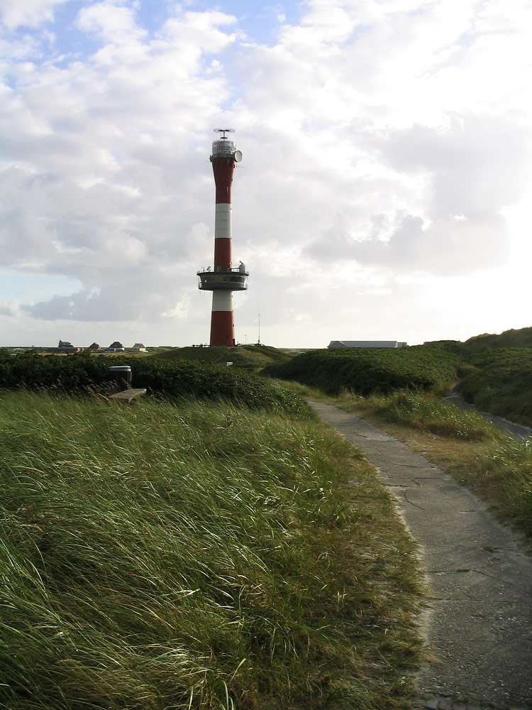 ‹ Wie Sie unschwer erkennen können, ist die Spitze des Neuen Leuchtturms momentan verpackt, er wird zur Zeit umgebaut und brandsicher gemacht. Vom »Grimmshörn« aus hat man einen schönen Blick auf den Turm mit dem Westdorf im Hintergrund.