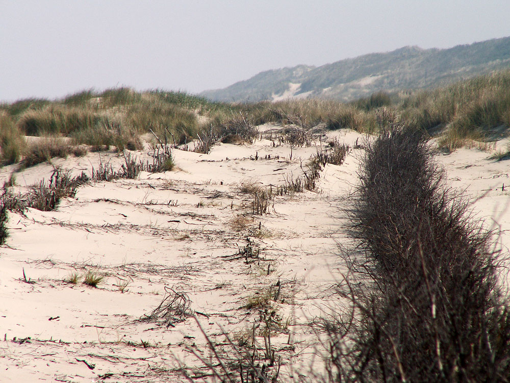Die ehemaligen (ausgedienten) Buschreihen sind hier im Nordosten der Insel noch gut zu erkennen. Bei den linken beiden Reihen ist bereits fast das komplette Buschwerk fort, während es rechts noch vorhanden ist.