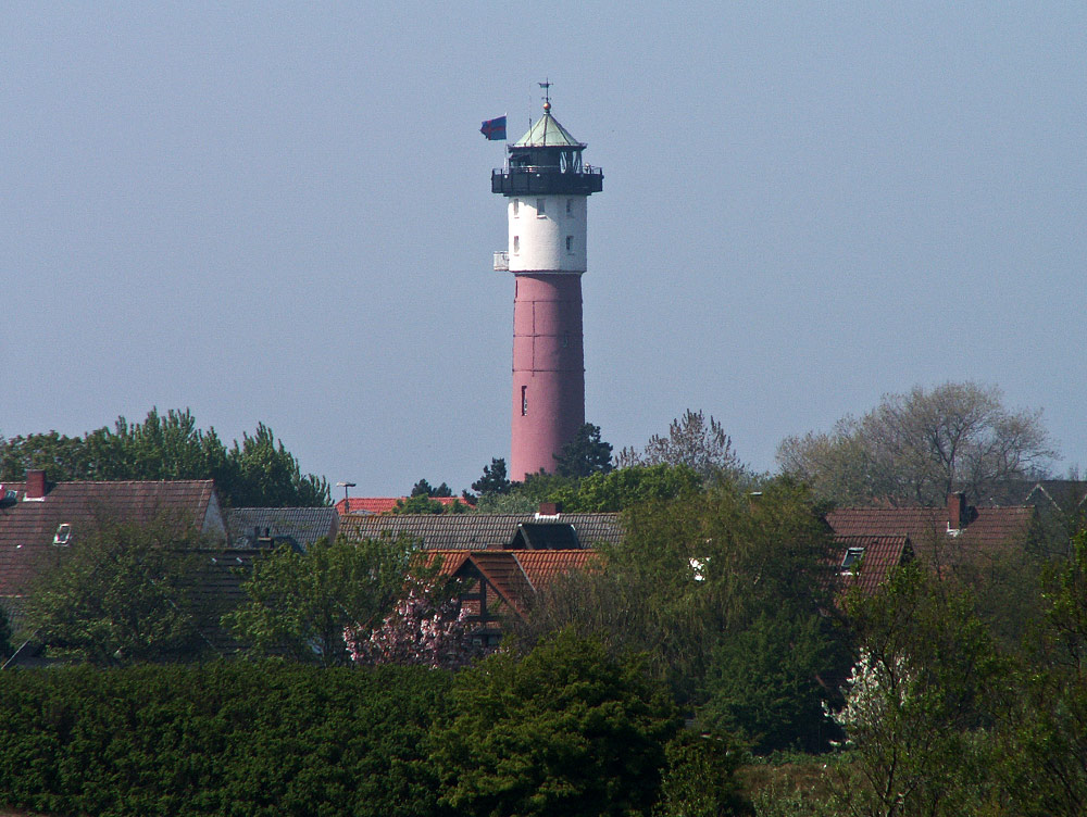 Ein richtig idyllisches Frühlingsfoto mit dem Alten Leuchtturm, vor dem sich die Häuser des südlichen Inseldorfes ducken. Während im nördlichen Teil des Dorfes das Gewerbe mit Hotels, Ferienwohnungen und Geschäften dominiert, befinden sich südlich des Leuchtturms hauptsächlich Wohnhäuser.