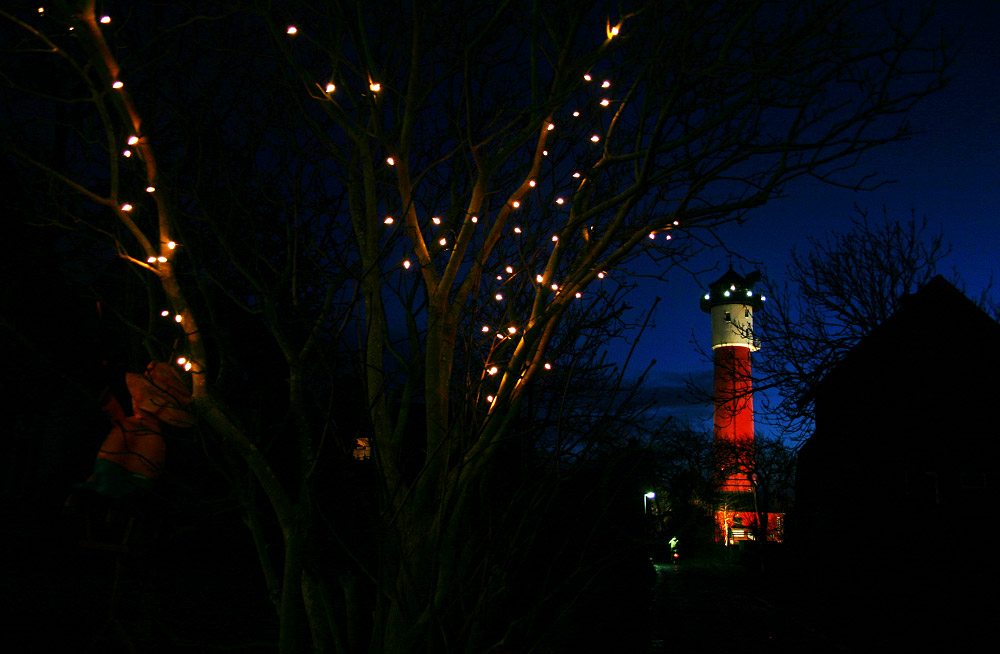 Einen wunderschönen Blick auf den Alten Leuchtturm hat man von jeher von der »Robbenstraße« aus. Wenn dazu noch festlich geschmückt ist, entstehen Bilder wie dieses.