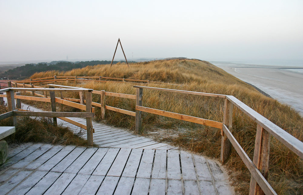 Nahe des »Bielefelder Heims« hat man die Möglichkeit, von einer Plattform in den Dünen die Aussicht zu genießen. Auf der rechten Seite sehen Sie den zum teil gefrorenen Strand.