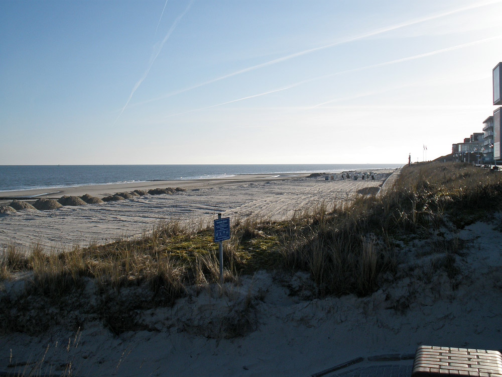 Bevor der Sommer beginnt, wird mit Hilfe einer Planierraupe der (zum Teil neu aufgefahrene) Hauptstrand auf Vordermann gebracht. Der Winter 2008/'09 hat zum Glück kaum Sandverluste gebracht, so daß nur relativ wenig Sand herbei geschafft werden mußte. Die ersten Strandkörbe stehen auch bereits – etwas weiter hinten unter der Uhr.
