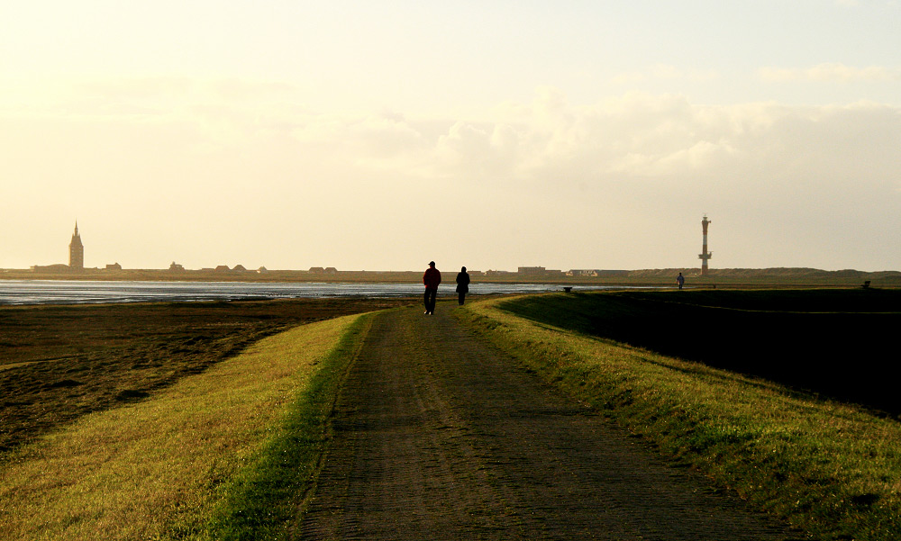 Ein paar Läufer und Spaziergänger sind auf dem Deich unterwegs, ansonsten geht ein schöner Tag mit einem ruhigen Abend langsam zu Ende.
