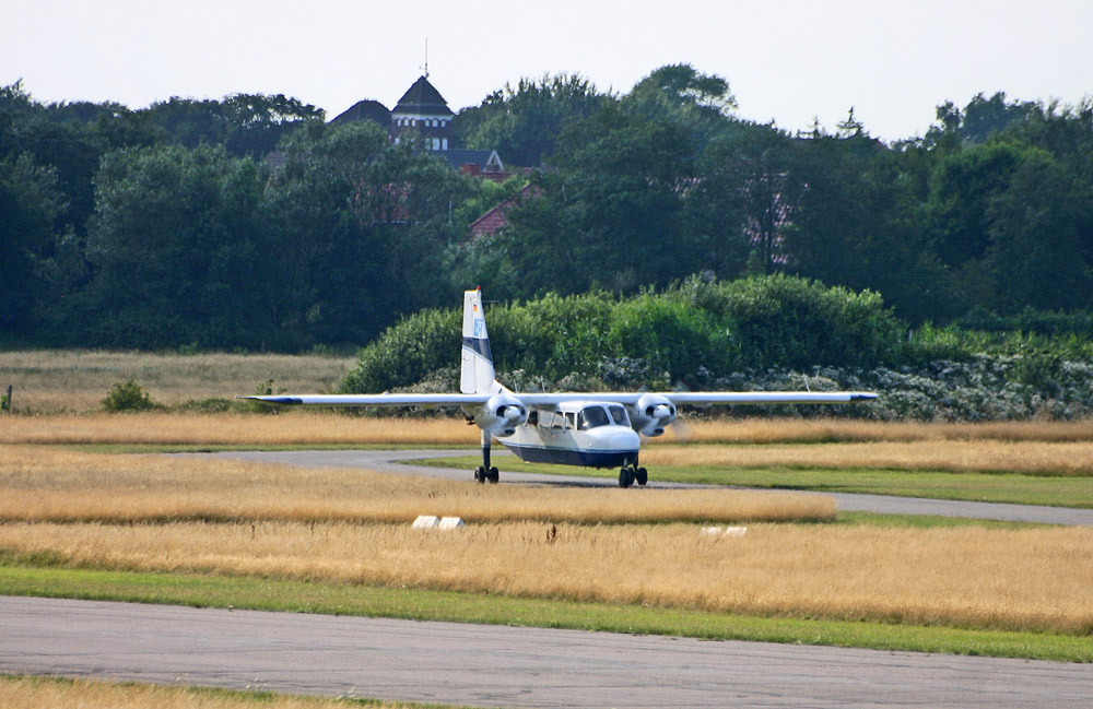 Die Linienmaschine »D-ILFA« der LFH auf dem Weg zur Startbahn. Während Gäste, die vom Bahnhof (im Hintergrund) abreisen, knappe 1 ½ Stunden benötigen, ist man mit dem »Inselflieger« innerhalb von 5 Minuten (!) in Harlesiel.