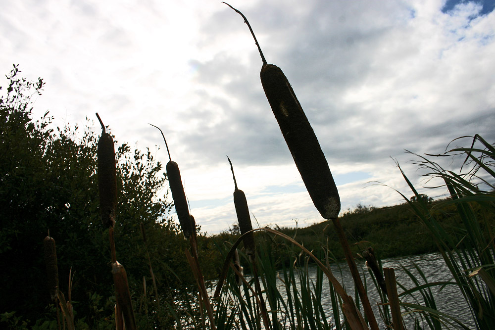 Eine Gegenlichtaufnahme vom Ufer einer »Eiskuhle«. Ein paar dünne Wolken verdunkeln zwar den Himmel, der Tag war aber trotzdem bisher für Mitte Oktober ganz schön.