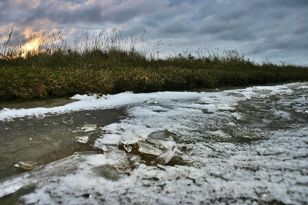 Es ist bitterkalt, die Pfützen auf dem Weg zum Ostende (der parallel zur ehemaligen Bahntrasse verläuft) tragen eine Eisschicht. Zeit, nach Hause zu kommen!