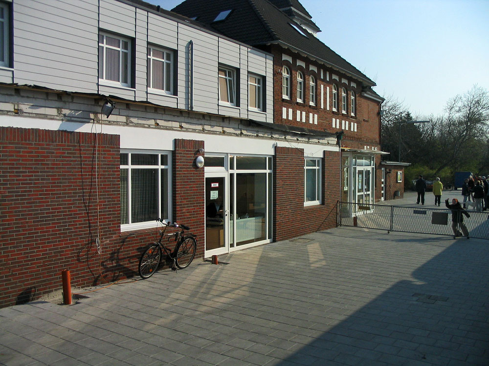 Hier sehen wir den zu der Zeit im Umbau befindlichen Wangerooger Bahnhof, er muß hier komplett ohne Bahnsteigüberdachung auskommen.