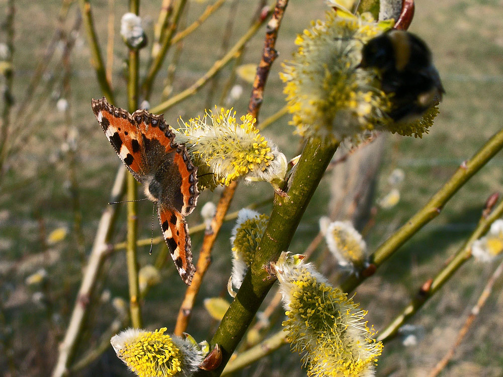 Ein »Kleiner Fuchs« (Aglais urticae) hat sich auf einem Weidenkätzchen am Wangerooger Westende niedergelassen.