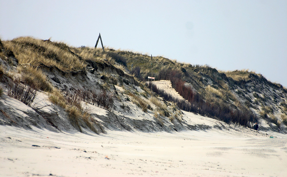 Die Dünen sind arg mitgenommen, doch der vergangene Winter brachte glücklicherweise keine größeren Stürme mit sich, außerdem wurde das gesamte Strandniveau durch eine große Aufspülung erhöht.