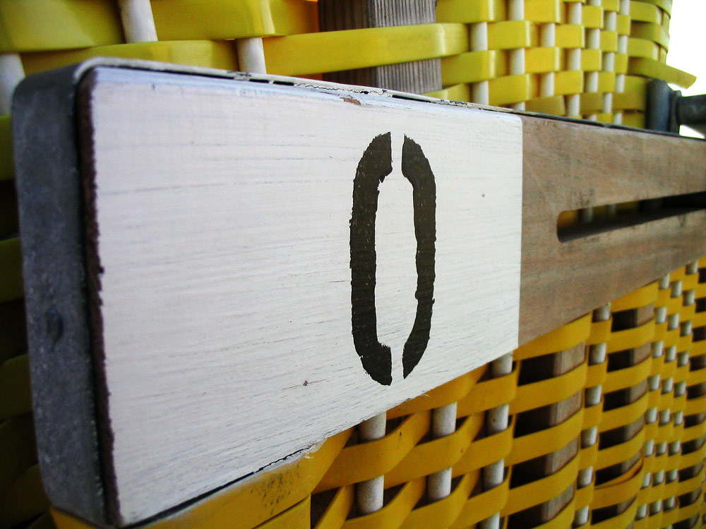 Der Mittelfeld-Strandkorb mit der kuriosen Nummer 0 ist auch gleichzeitig der einzige Korb am Hauptstrand, der nicht in Weiß sondern in Gelb gehalten ist. Normalerweise steht er direkt unter der Uhr auf der Strandmauer, doch manchmal muß er als Ersatz für defekte Strandkörbe herhalten und steht mitten im Feld.