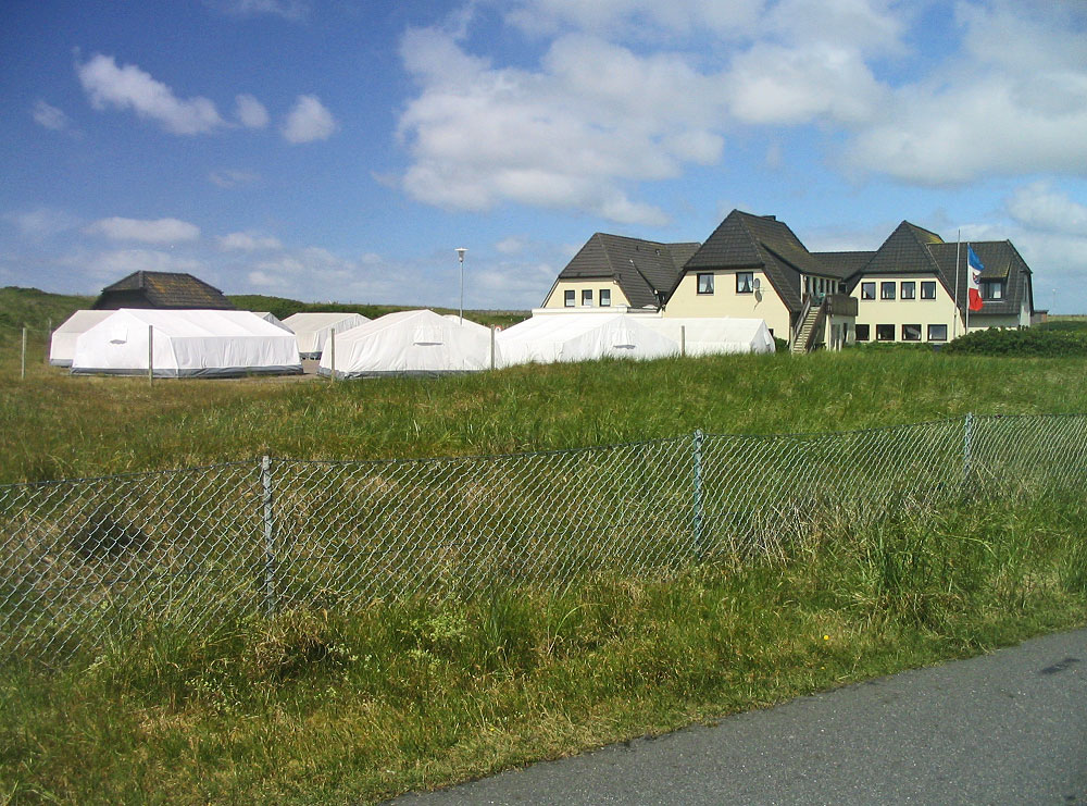 Nun liegt das Haus des Vogelsbergkreises links von uns, vor dem Haus befindet sich traditionell jedes Jahr ein Zeltlager. Bei dem Wetter keine besonders unangenehme Sache.