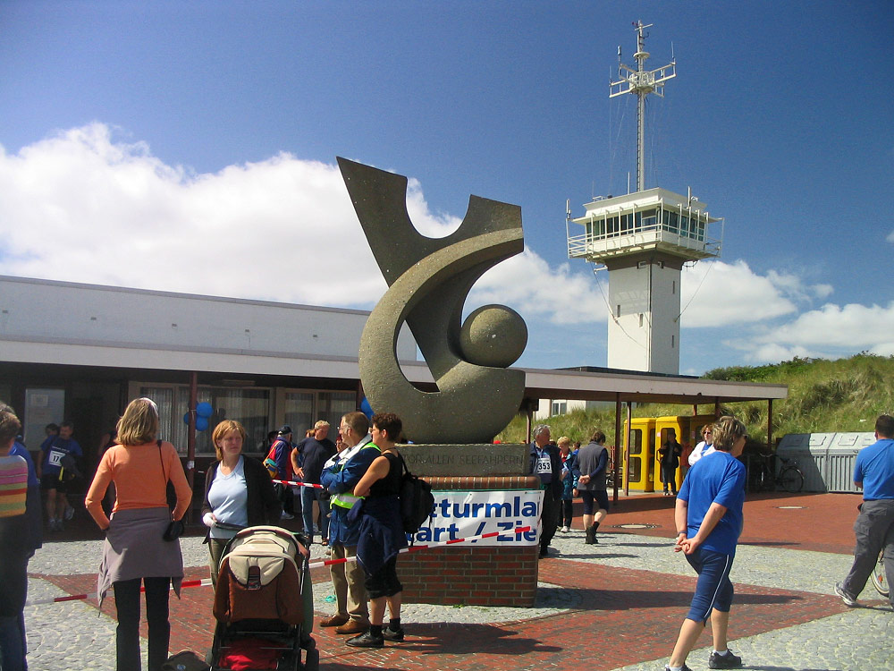 Wir sind nach unserer Tour ums Westende, entgegen der Laufrichtung, ebenfalls wieder am Start- und Zielpunkt beim »Navigator« eingetroffen. Gleich wird die Siegerehrung stattfinden.